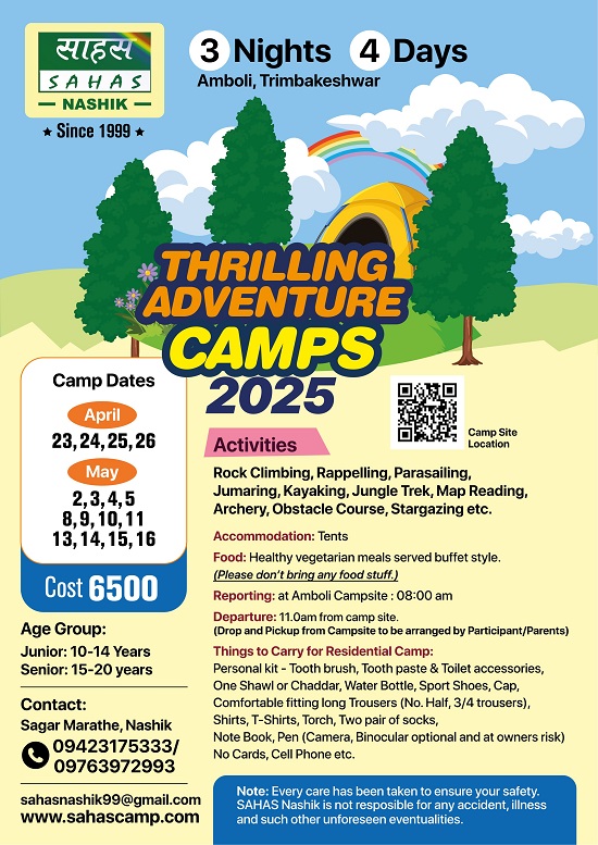 SAHAS Residential Camp Amboli, Trimbakeshwar, Nashik (3 nights / 4 days) :